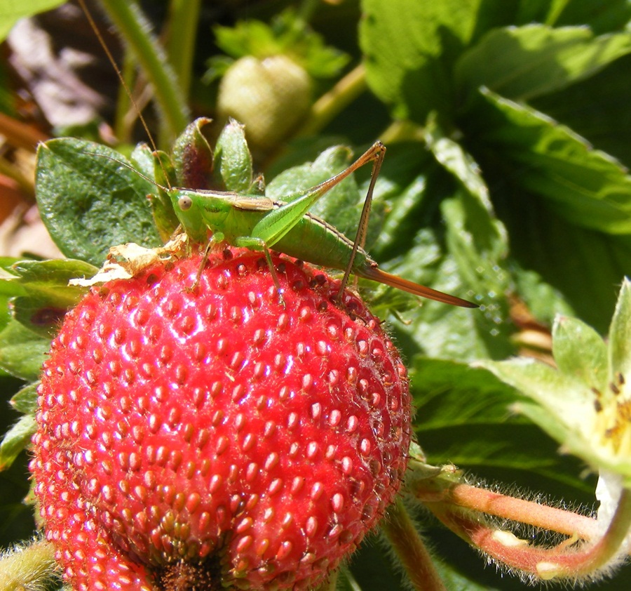 This is an awesome shot, love the yummy red strawberry and the grasshopper! Thank you for sharing your post with my critter party! Have a happy day!