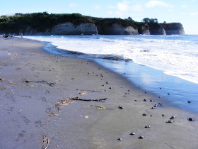 I took these photos at Urenui Beach back in 2010 at our first visit there. The sandstone outcropping in the top/middle of the shot had a hole at the bottom.